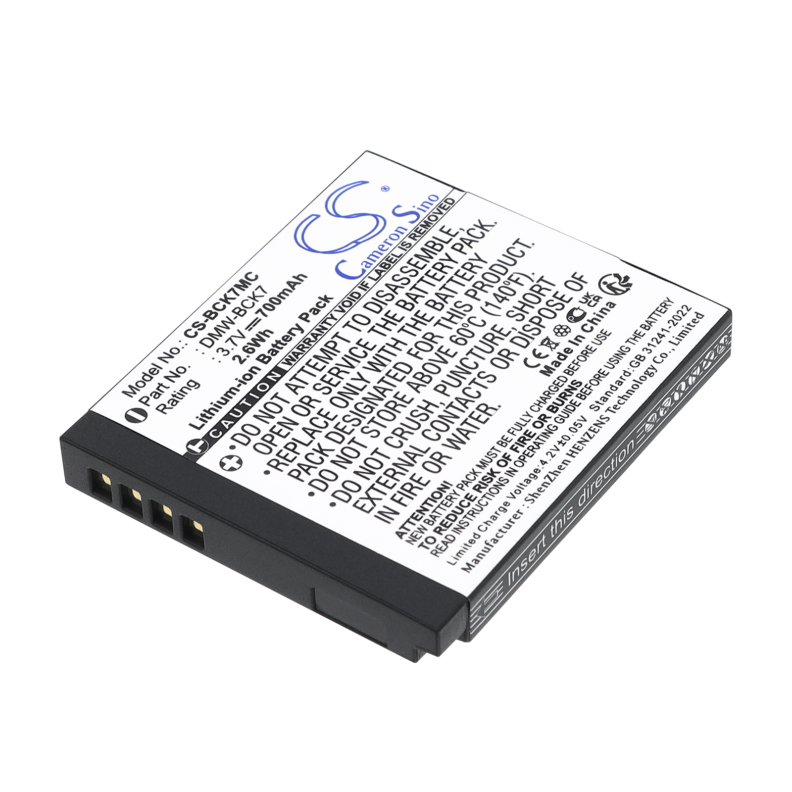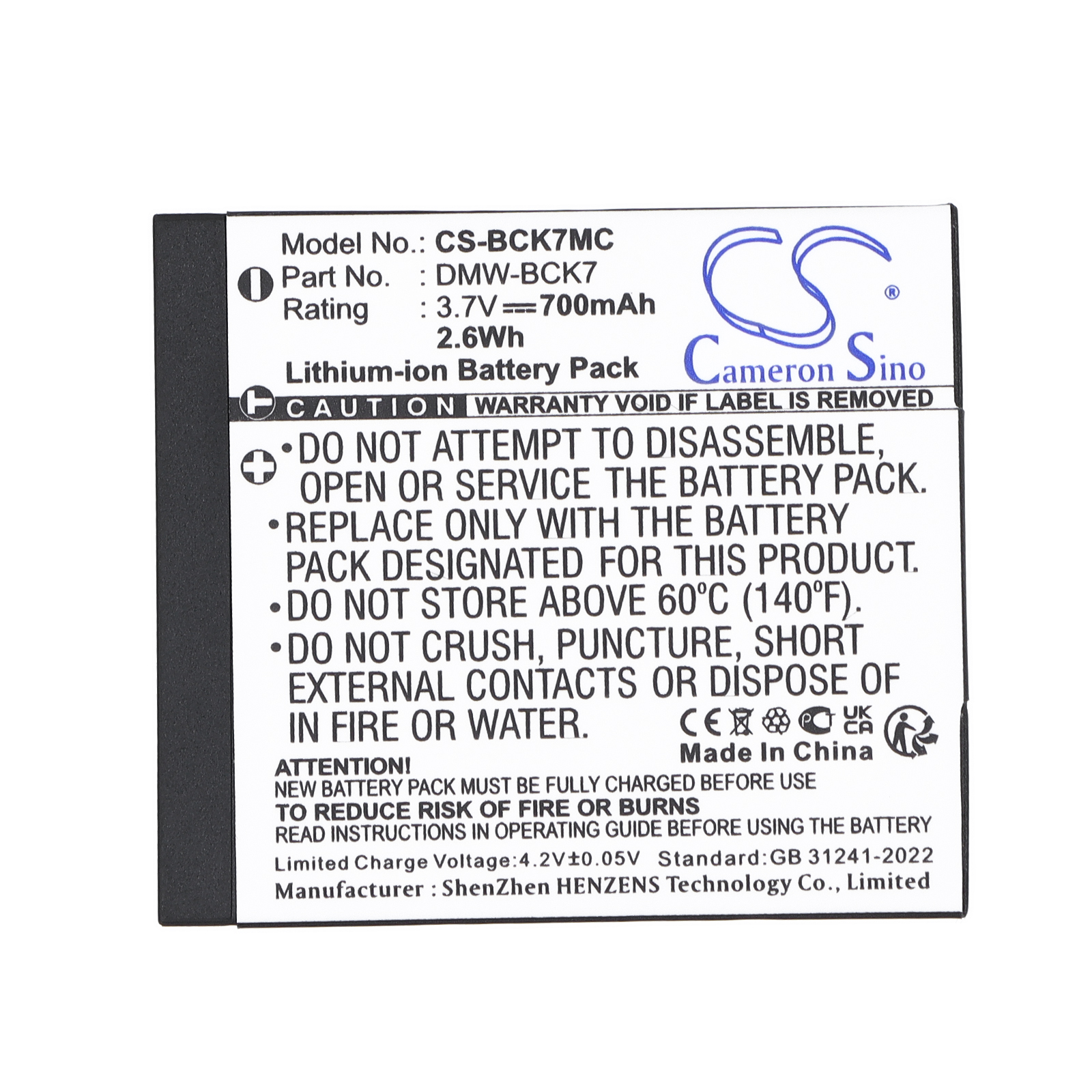 700 mAh for Panasonic ACD-341,DMW-BCK7,DMW-BCK7E,DMW-BCK7PP,NCA-YN101F,NCA-YN101H,NCA-YN101J,SDBCK7,VW-BCK7