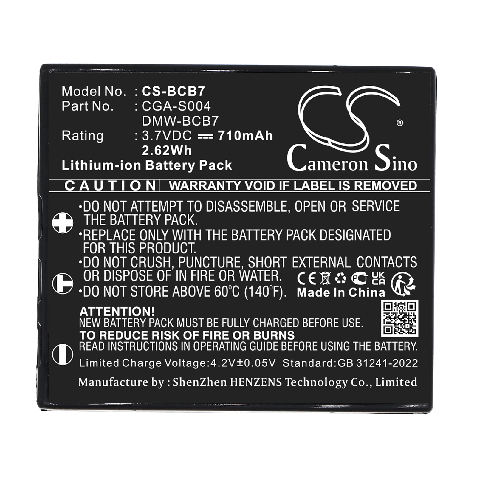 | Replaces | Panasonic CGA-S004, Panasonic CGA-S004A, Panasonic CGA-S004A/1B, Panasonic CGA-S004E/1B, Panasonic DMW-BCB7 |