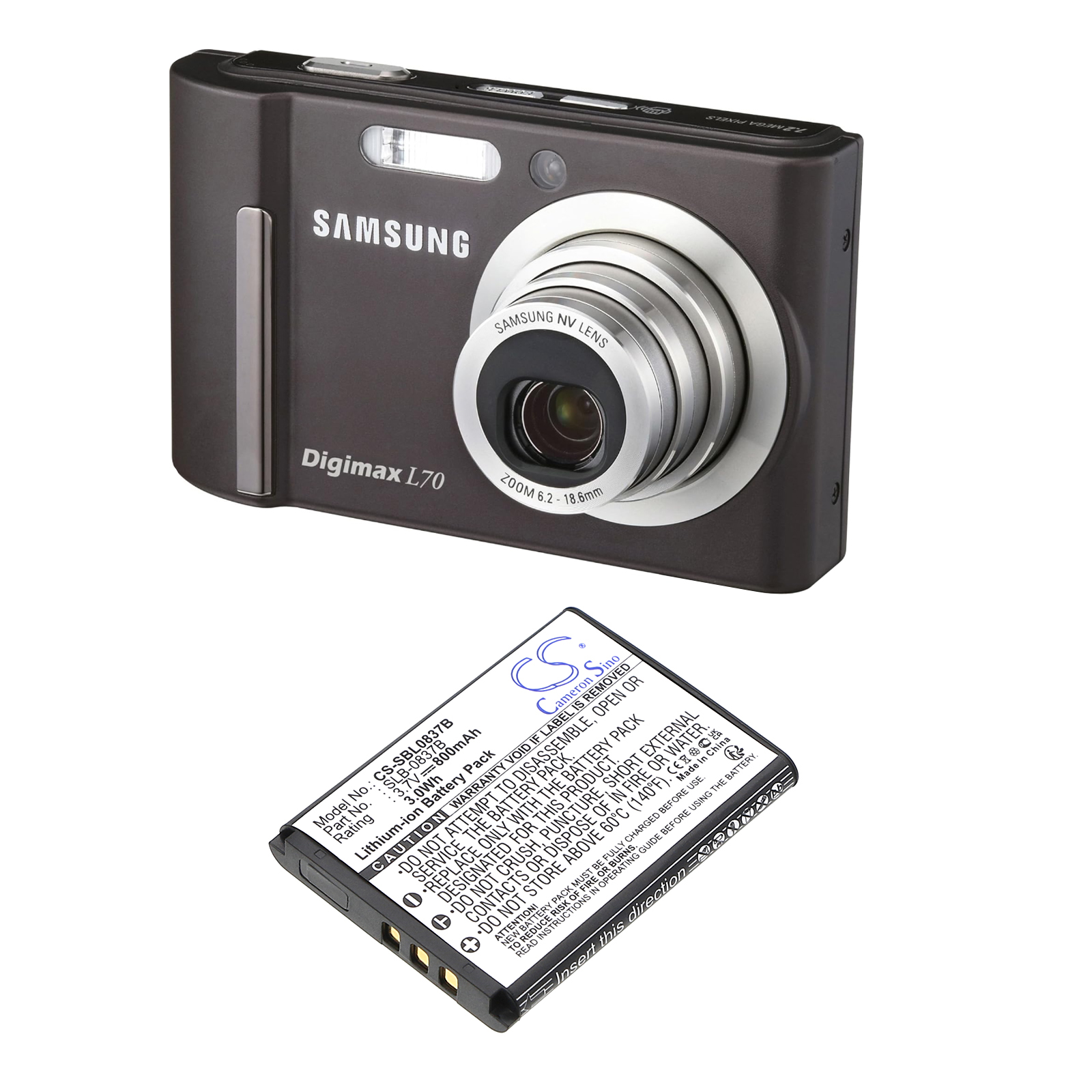 | Samsung | Digimax L70 Digimax L70B L201 L83T NV10 NV15 NV20 NV8 |