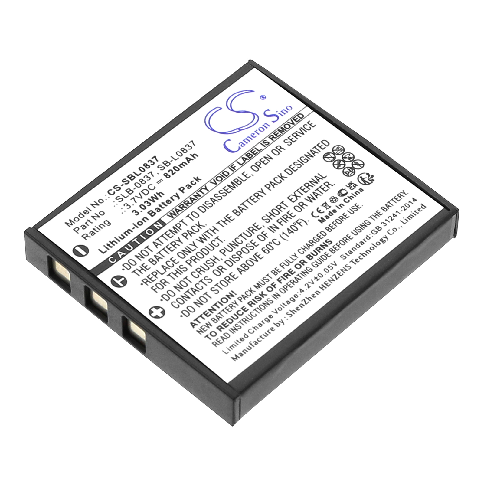 820 mAh for Samsung SB-L0837,SLB-0837