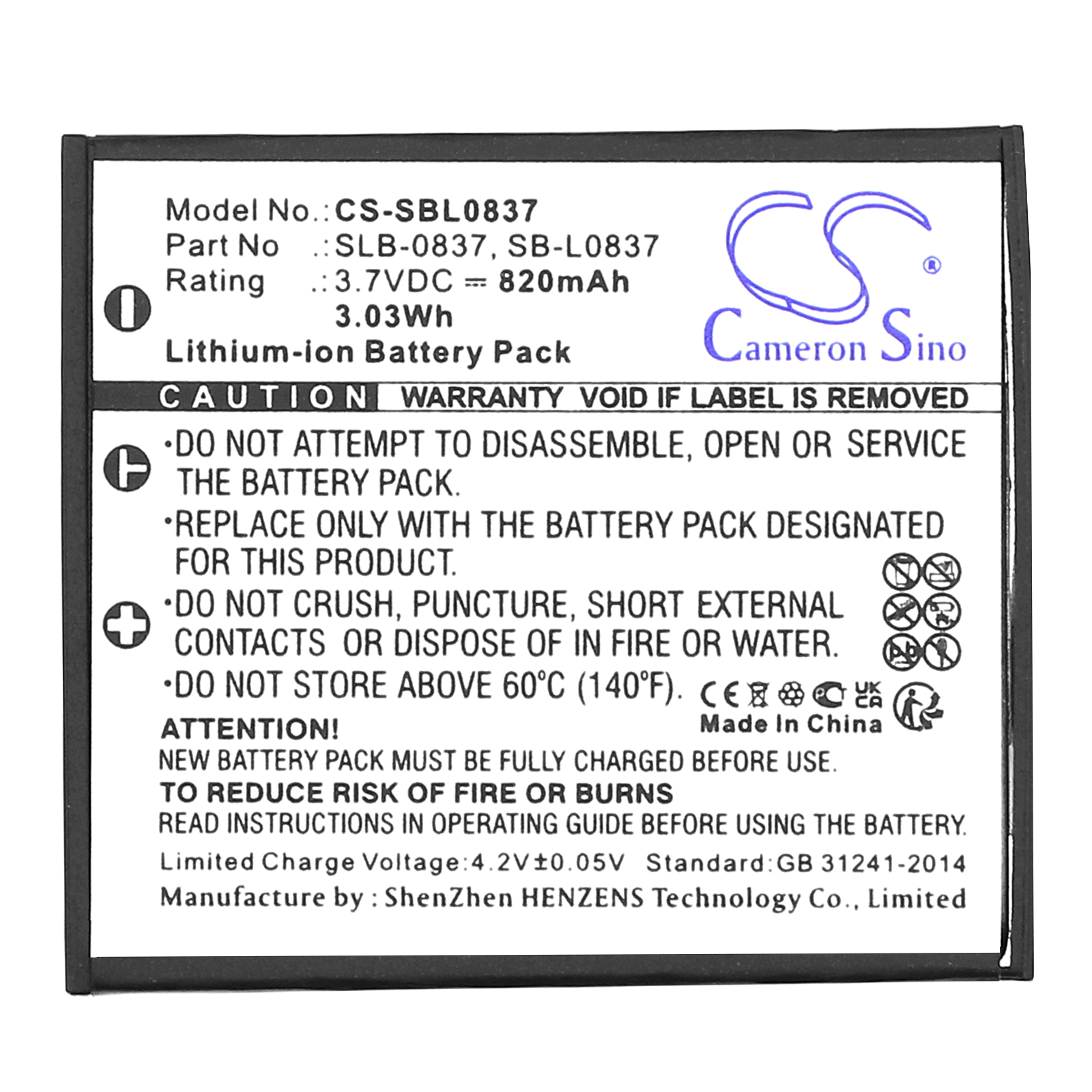 | Replaces | Samsung SB-L0837, Samsung SLB-0837 |
