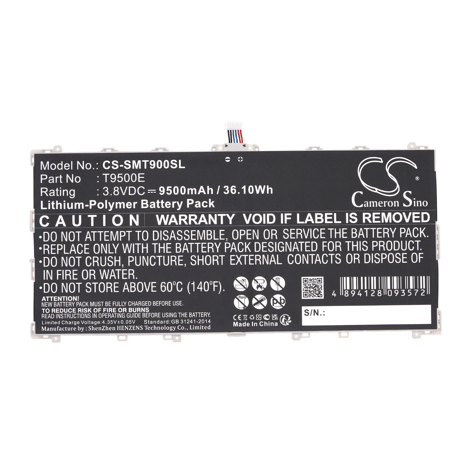 9500 mAh for Samsung T9500E
