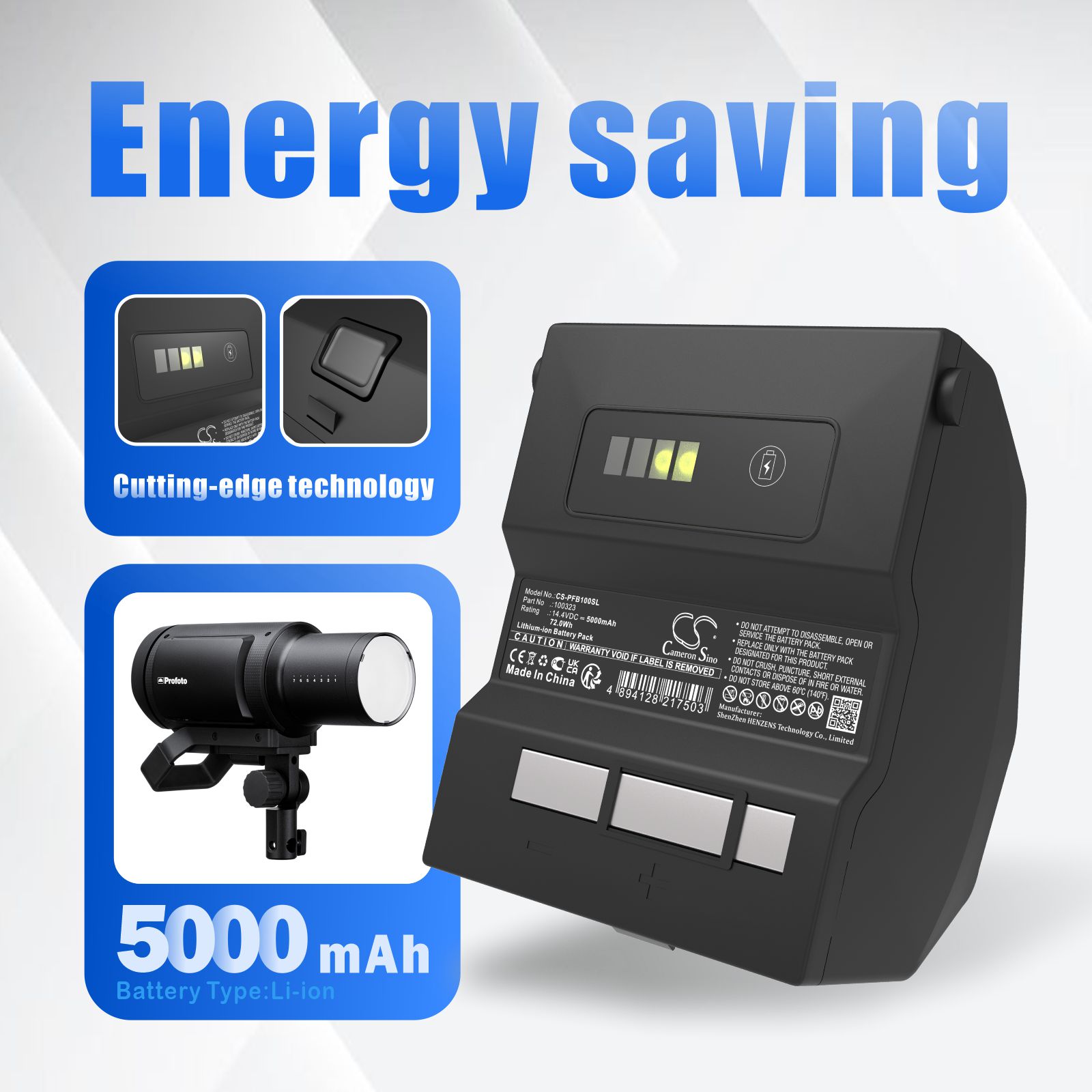 Replacement Battery for 100323/100399 Compatible with Profoto B1/B1X AirTTL Flash Heads 14.4V 5000mAh/72Wh