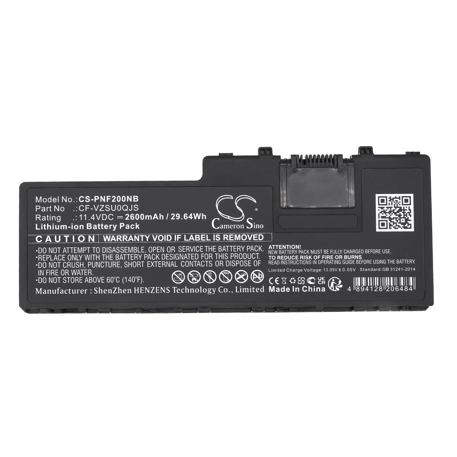 Replaces battery for Panasonic CF-VZSU0QJS, Toughbook CF-20, Toughpad FZ-A2, Lithium-ion 2600mAh